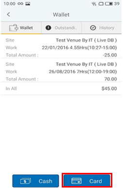 4.) Go to “Wallet” on the main page, check the payment and click on “Bank/Card” to make bank transfer payment.